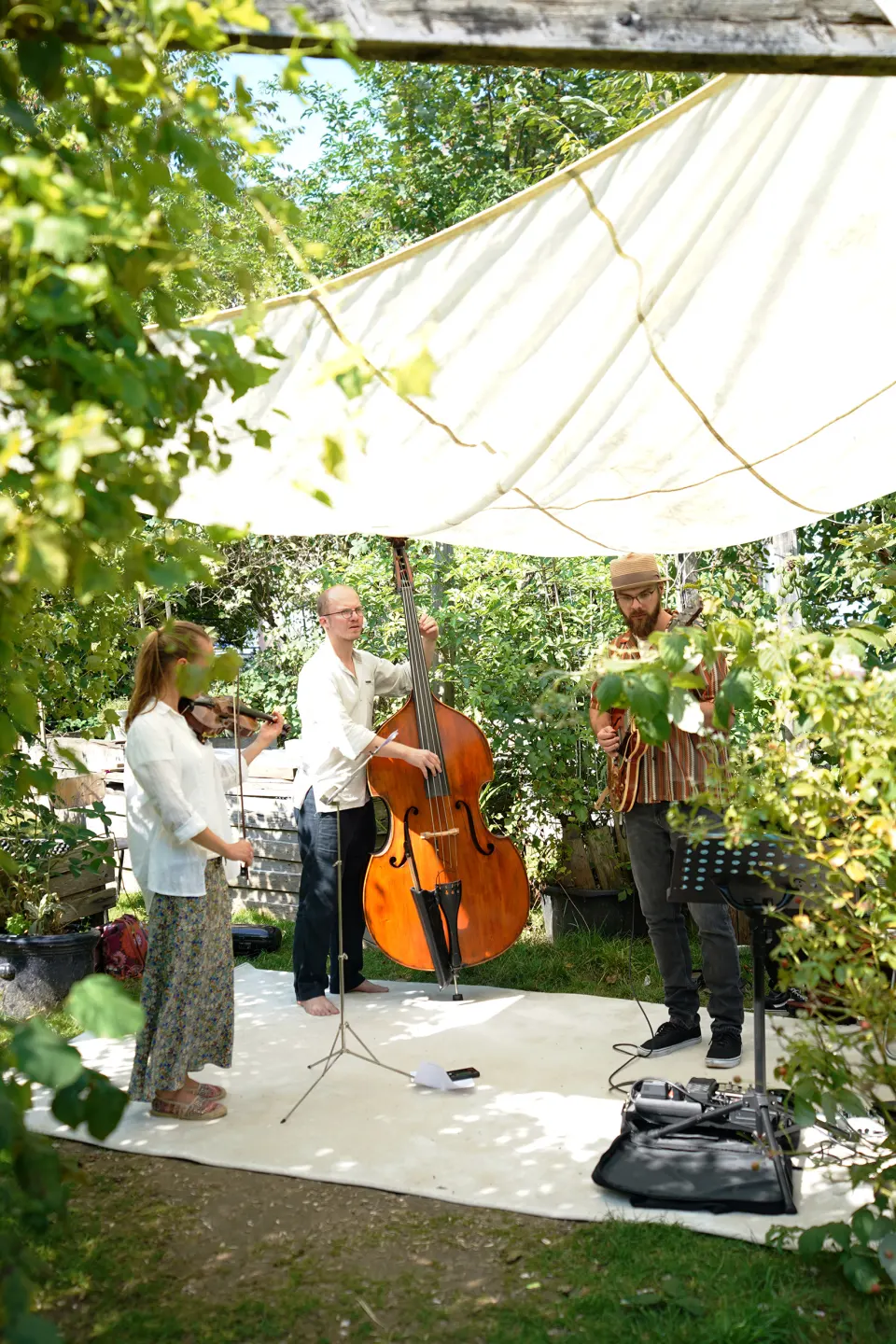 Der letzte Augusttag wurde mit gemeinsamen Essen im Lorengarten, einem Konzert vom Moritz Götzen Trio und einer Lesung von Marie-Luise Eberhardt gefeiert.